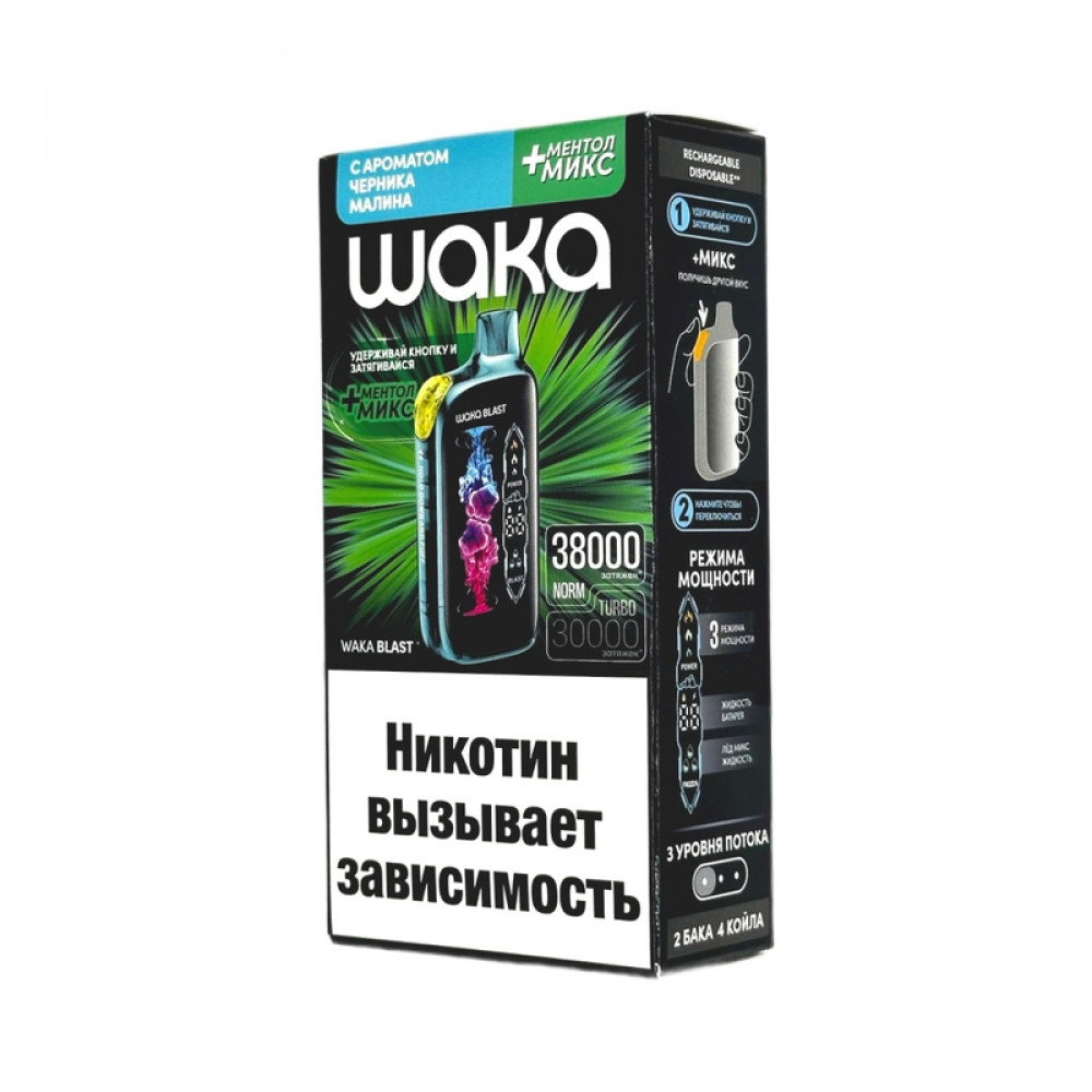 WAKA BLAST 38000 Hard - Черника малина + ментол микс - купить в Воронеже